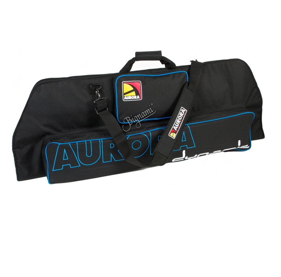 La borsa comprende un sistema di irrigidimento del fondo, spallaccio per il trasporto a spalla o a schiena e suddivisione interna per il trasporto di due archi o per suddividere l’arco dal resto del materiale.